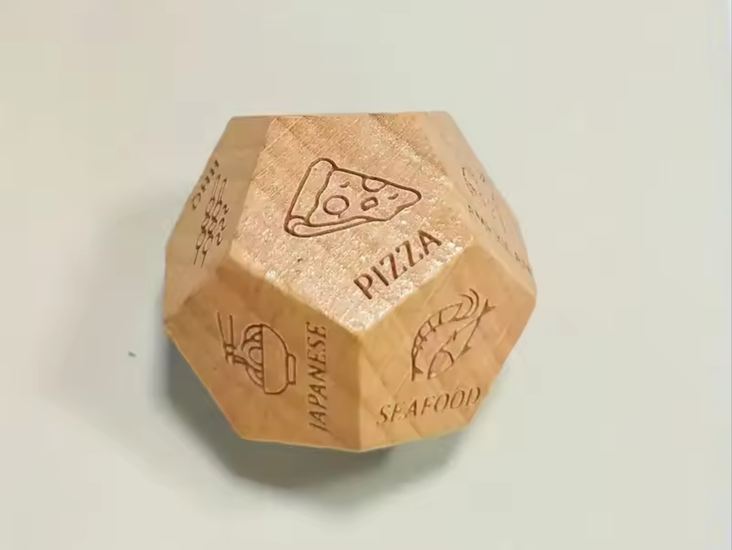 Haz que cada cena sea diferente y llena de sorpresas con este dado de madera 12 caras para decidir dónde cenar. ¡Un regalo divertido, práctico y original para cualquier ocasión!